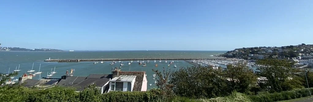 Starting at the Brixham Harbour Lifeboat Station, you have a beautiful view straight ahead toward the other Torbay towns; Paignton & Torquay.
